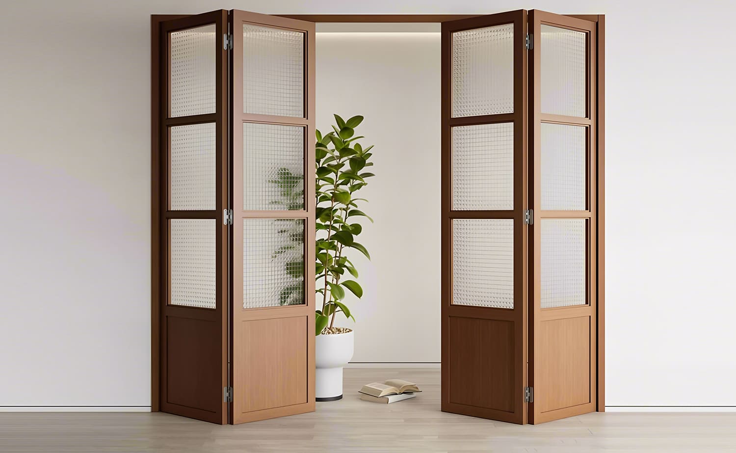 wood bi fold doors bring rich texture and warmth, adding a refined, timeless character to interior spaces.