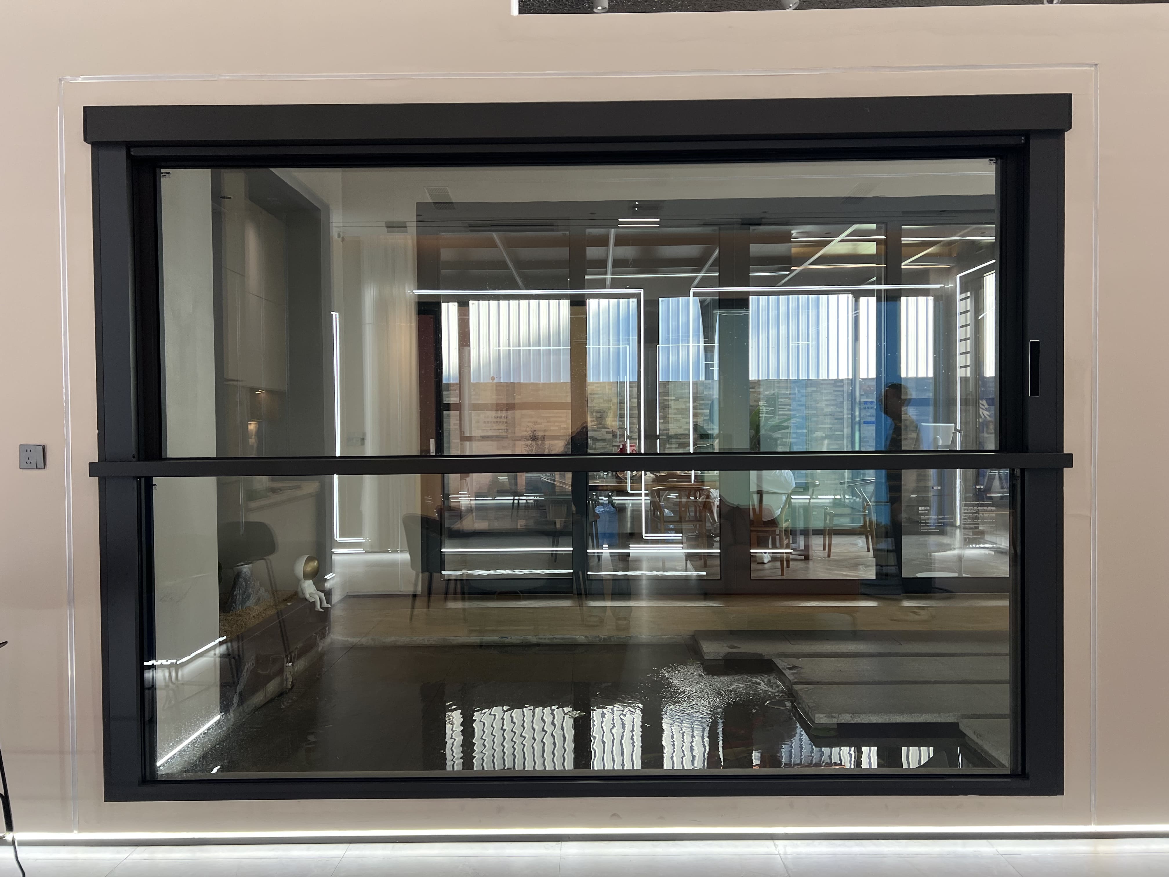 The lifting window design frees the countertop and maximizes usable area — perfect for kitchens, cafés, and patio bars.