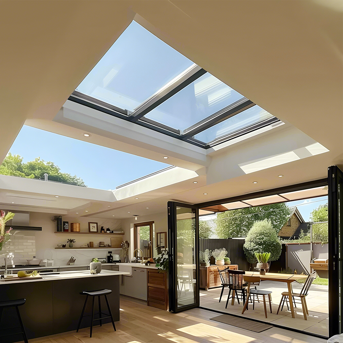 The core advantage of the electric skylight lies in its intelligent control system. Traditional skylights often need to be opened and closed manually, which is inconvenient to operate, especially for skylights installed at high places, which pose safety hazards when opening and closing. The electric skylight is equipped with an advanced electric drive device and intelligent control system. Users can easily open, close and adjust the skylight through a remote control, mobile phone APP or wall control panel.